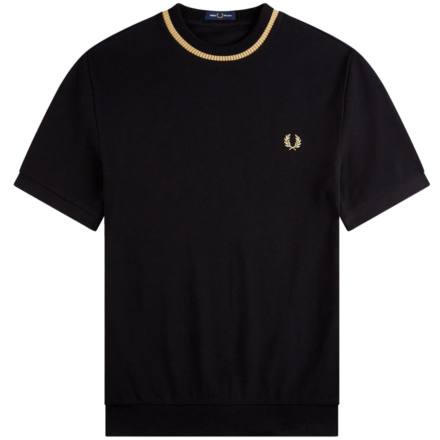 The crew neck T-shirt, made in England and constructed from a refined, structured cotton piqué. Designed with chunky ribs and a single tipped high crew neck.