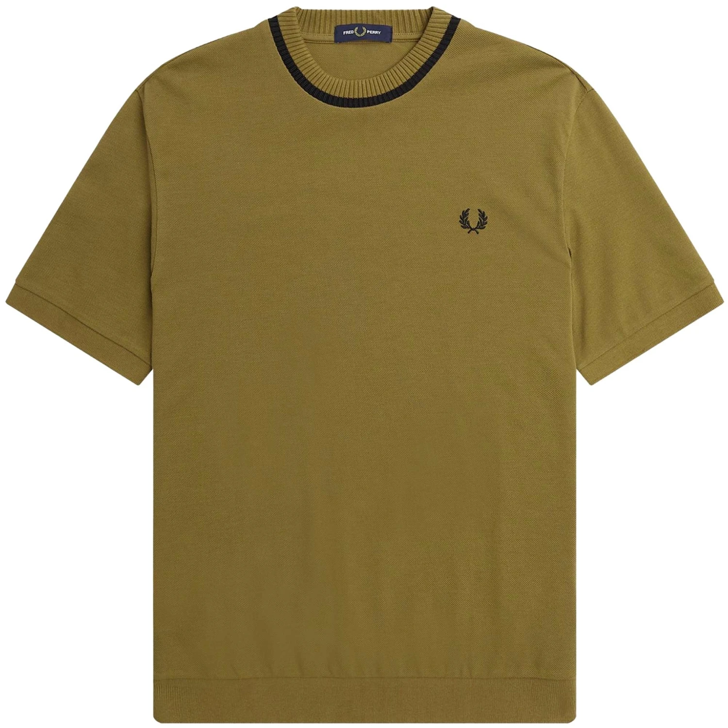 The crew neck T-shirt, made in England and constructed from a refined, structured cotton piqué. Designed with chunky ribs and a single tipped high crew neck.