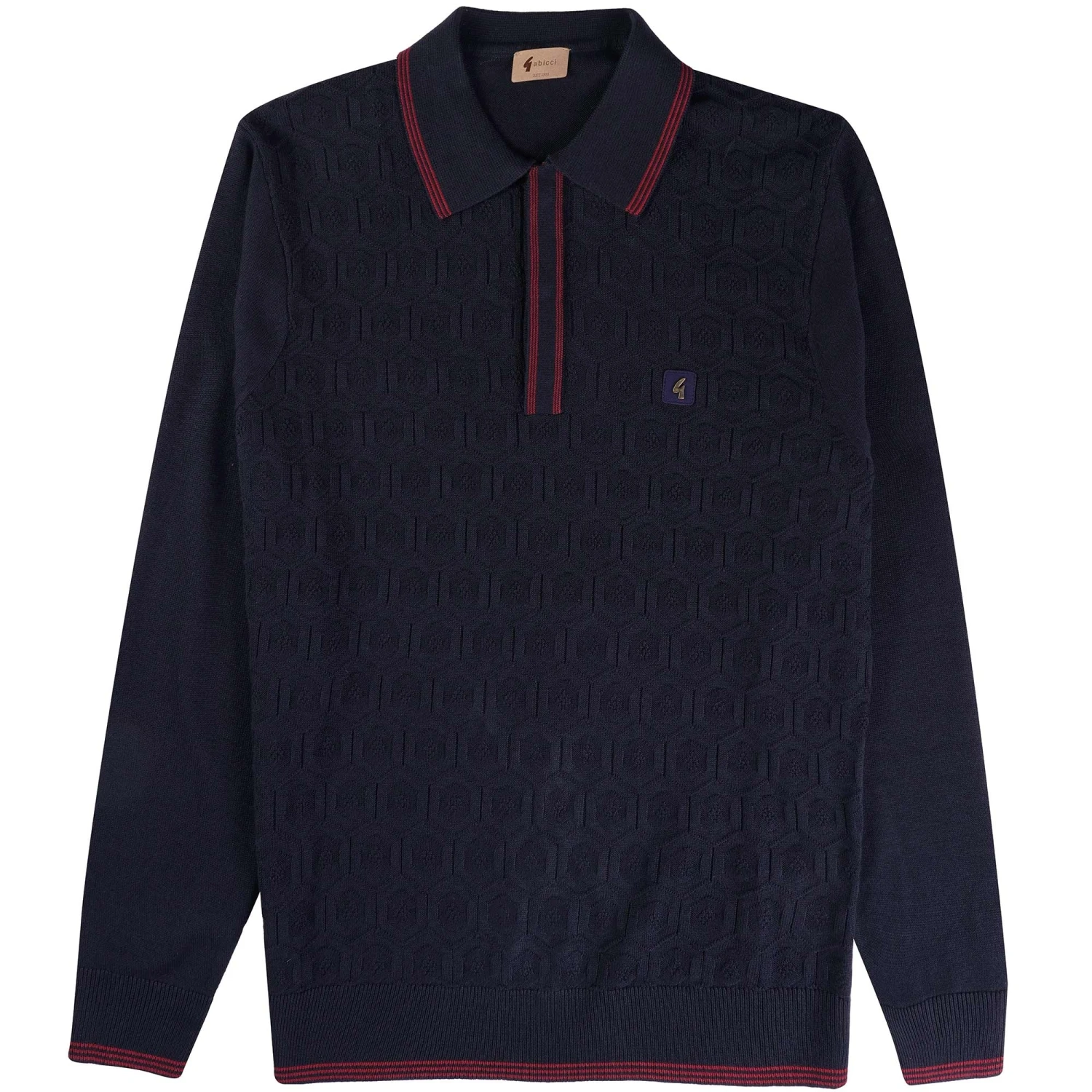 One for the modest guys, simple at first appearance but packed with exquisite craftsmanship. made with a tonal knit design that covers the whole chest. finished with an exquisite tipping design on the collar, cuffed sleeves, and bottom hem, as well as a hidden three-button placket.