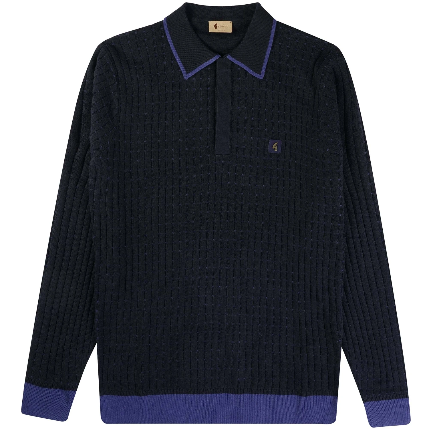 Gabicci Vintage 1973 Jura Long Sleeve Polo Shirt – Navy