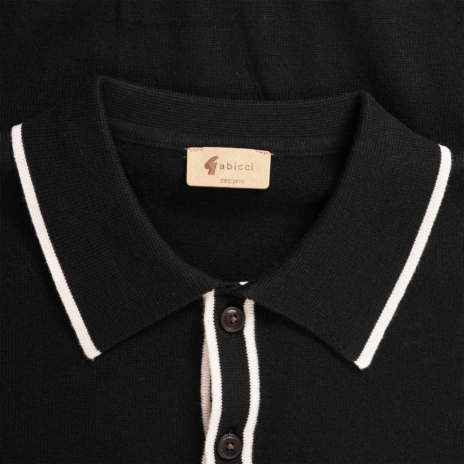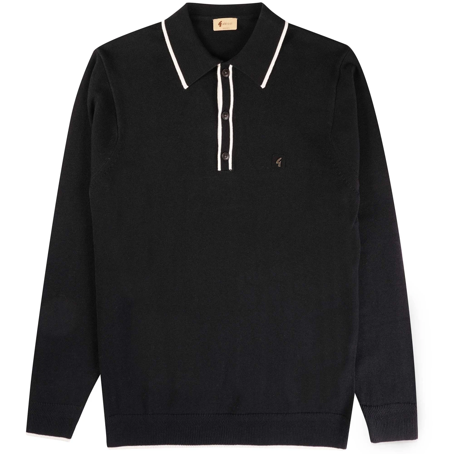 This Gabicci Vintage knitted tipped long sleeve vintage polo shirt with subtle lettering is a season-long wardrobe staple. The knit polo has a three-button collar, an embroidered symbol on the chest, and ribbed detailing on the cuffs, hem, and collar. A cream stripe runs around the polo top to complete the knit polo.
