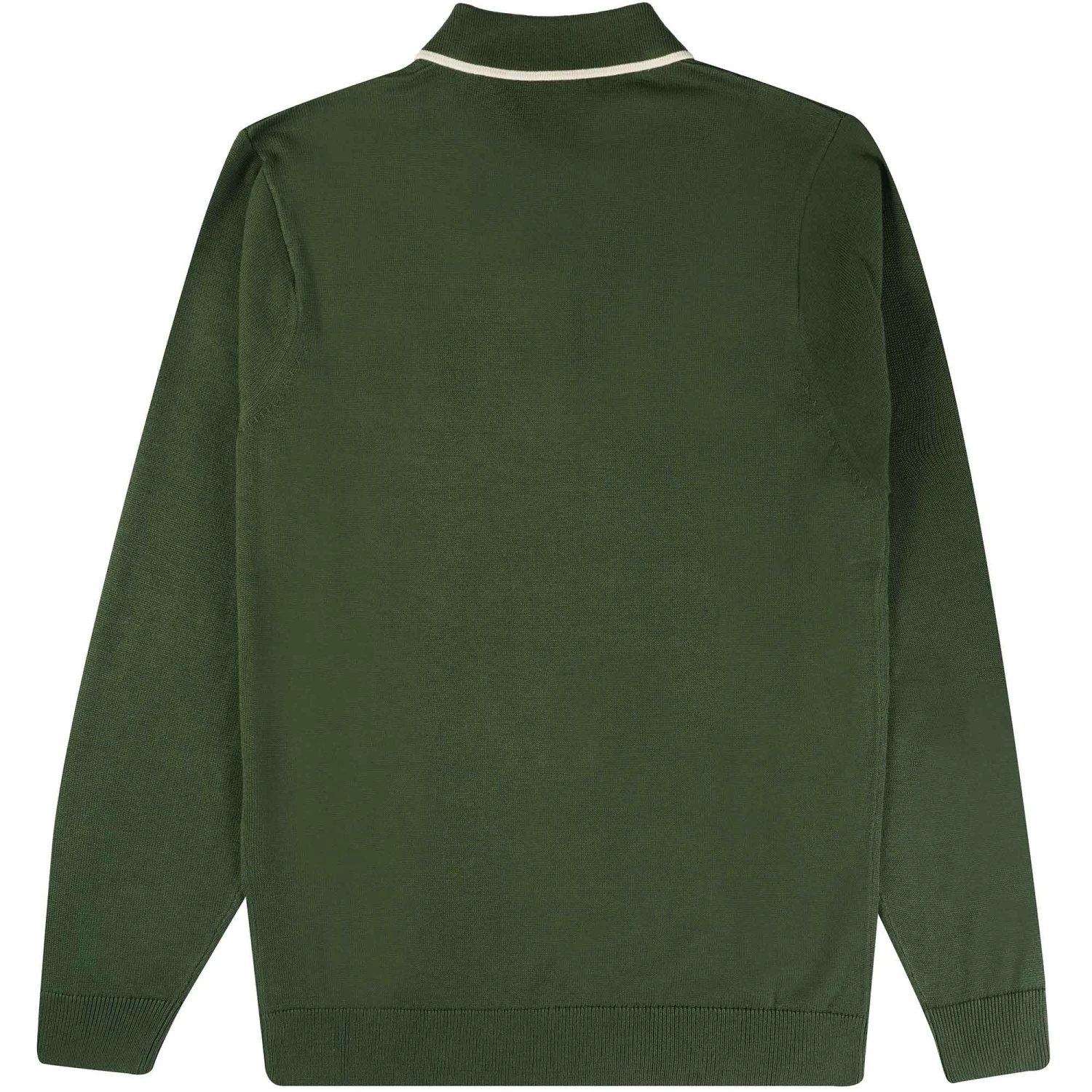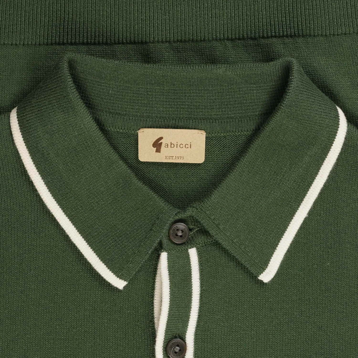 This Gabicci Vintage knitted tipped long sleeve vintage polo shirt with subtle lettering is a season-long wardrobe staple. The knit polo has a three-button collar, an embroidered symbol on the chest, and ribbed detailing on the cuffs, hem, and collar. A stripe runs around the polo top to complete the knit polo.