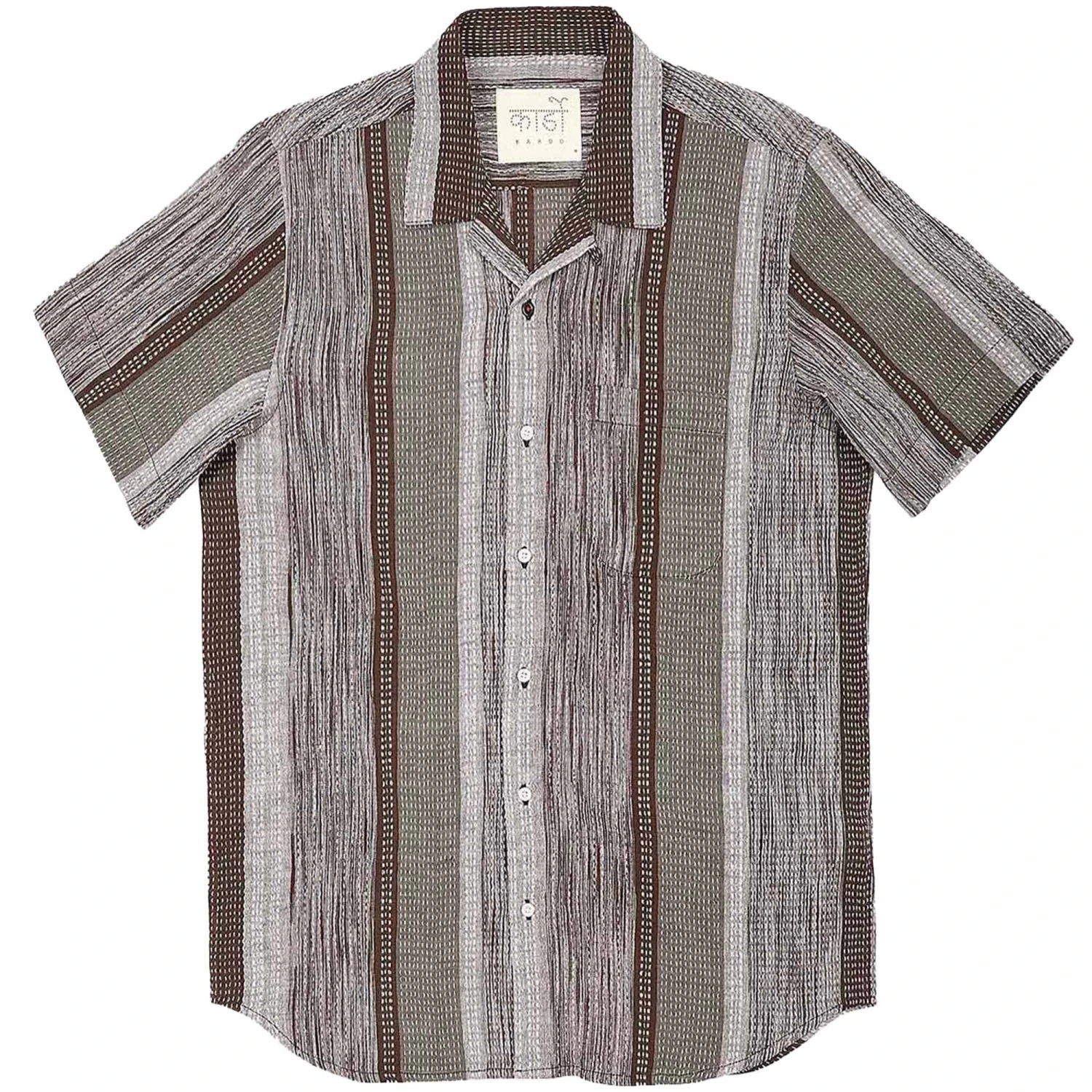 This is a cotton gauze textile produced in Tamil Nadu by Cotton India with a distinct rice stitch embroidery pattern. Featuring short sleeves and a button closure perfect for summer!