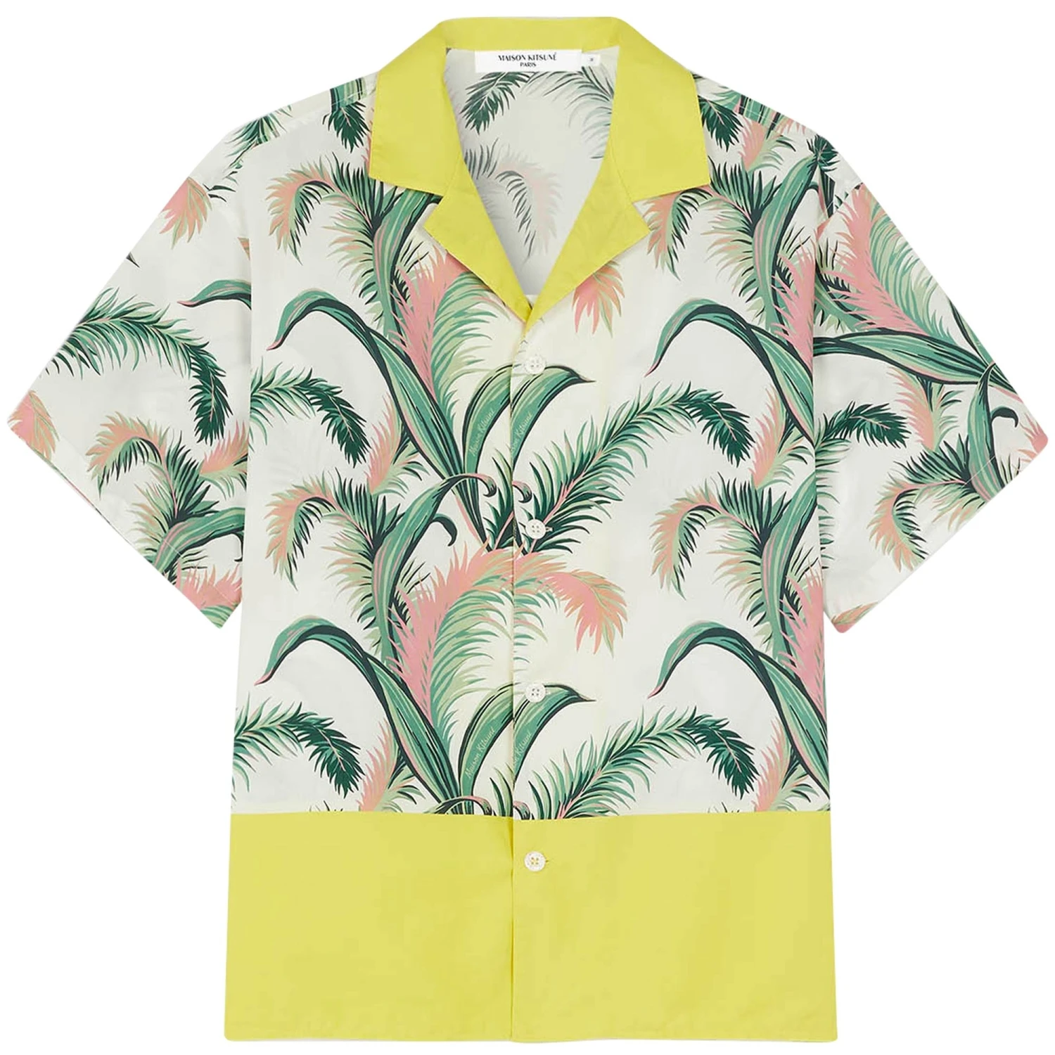 A Collection signed Maison Kitsuné and Hotel Olympia. This Cotton shirt features a relaxed cut with “palm frond” print., a full button down closure, short sleeves and Maison Kitsune branding throughout.
