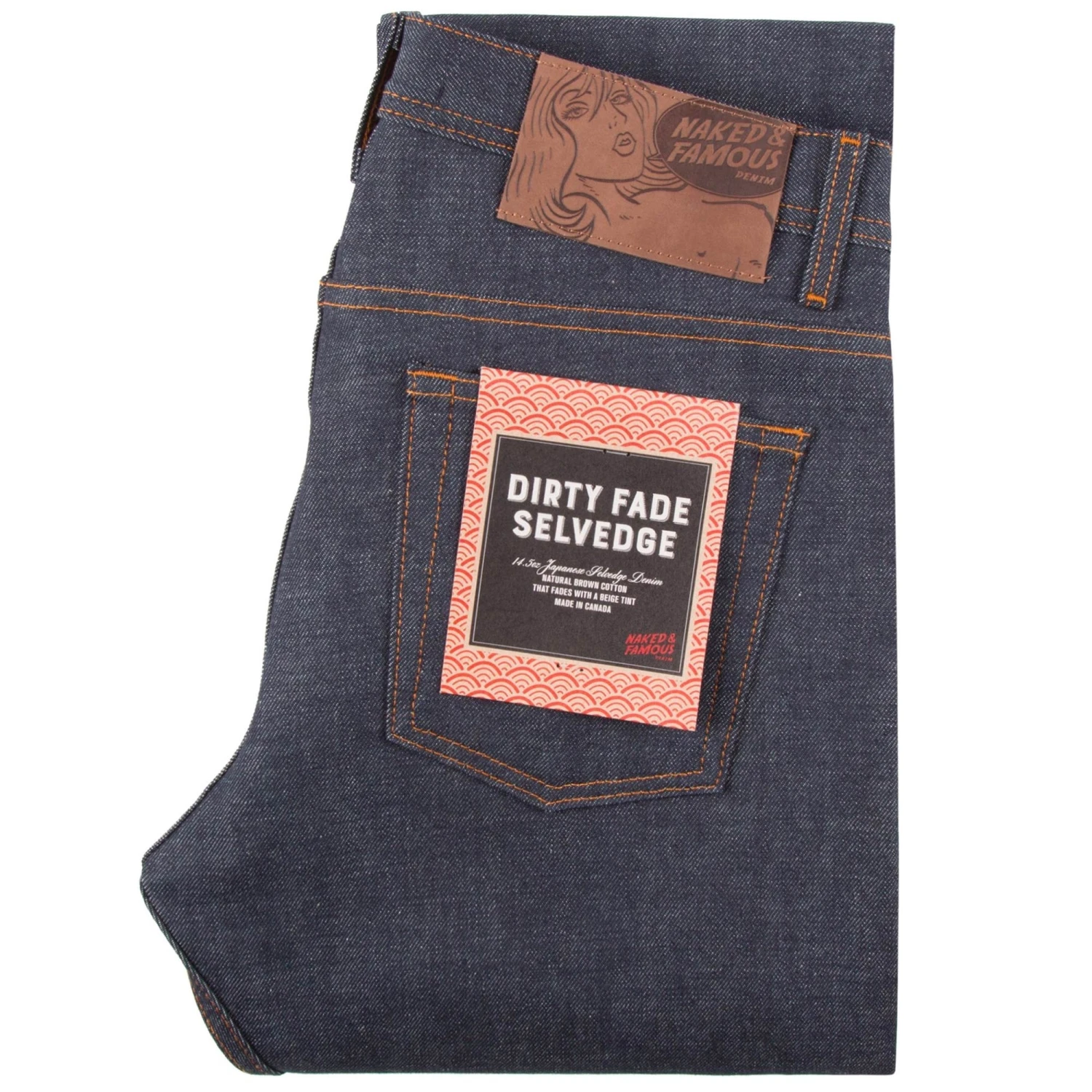 These 14.5oz Indigo Rope Dyed Jeans from Naked and Famous are just what your wardrobe needs. Constructed from a Japanese fabric and woven on vintage shuttle looms in a typical right hand twill construction. The jeans come with a red line selvedge ID and a indigo warp, white weft weave combining for a classic look. With time and wear the indigo dye slowly fades into a brown undertone, hence the name Dirty Fade. The Naked and Famous Super Skinny fit is a skinny fit throughout which tapers strongly from the knee down.