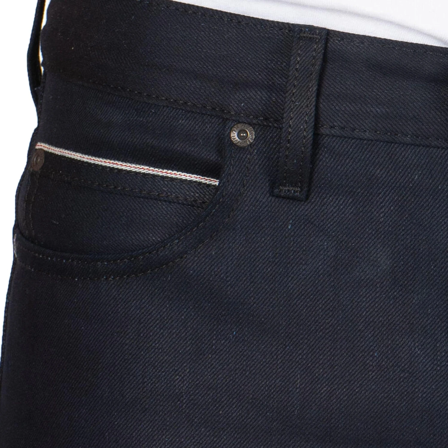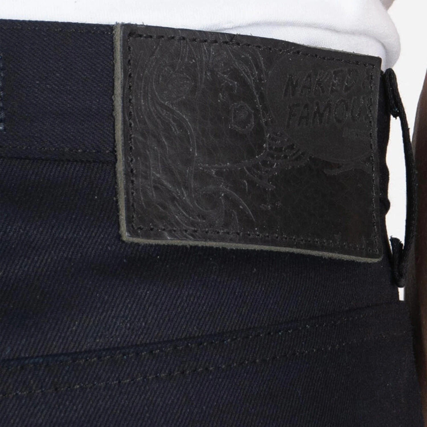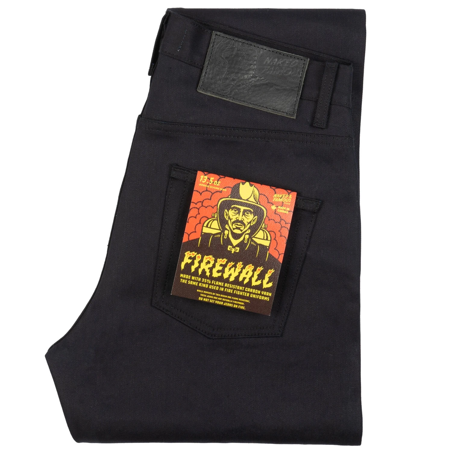 The Firewall Selvedge is a 13.5oz Japanese selvedge denim made with 35% flame-resistant carbon. In a special process acrylic fibers fired and carbonized. The result is a fiber with incredible resistance to flame and heat. Commonly used in fire fighter uniforms, and when super-heated becomes carbon fiber. Since the denim is a blend with cotton, they are not entirely flame resistant, so please do not set your legs on fire. However, they do make one bad ass pair of jeans. Other details include tonal stitching, black buffalo leather patch, classic red line selvedge ID, black military spec non reflective buttons and rivets.
