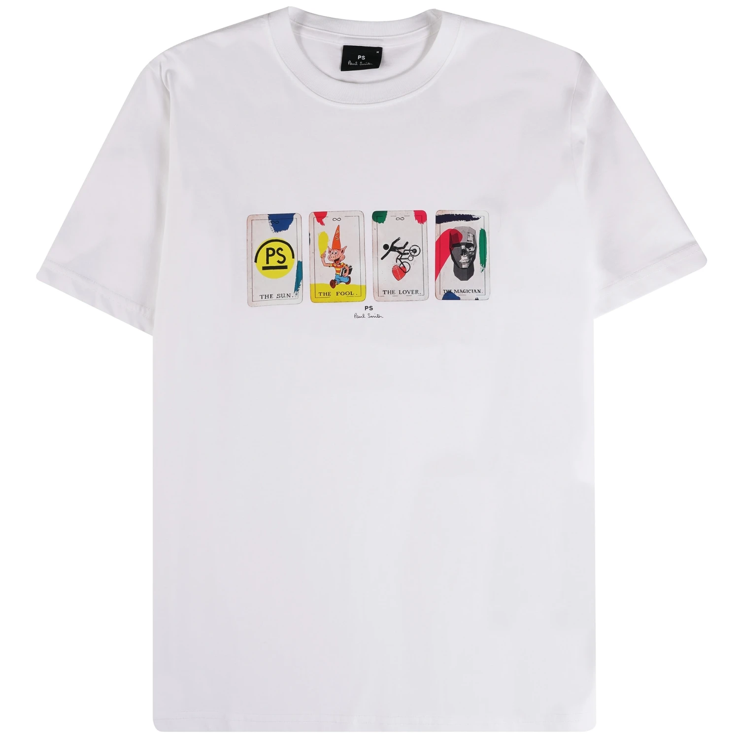 Made from organically grown cotton, this White T-shirt features a playful ‘Tarot Cards’ graphic in the centre. Ideal for styling with jeans and trainers, this T-shirt features a crew neckline and our PS Paul Smith signature logo detail.